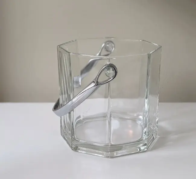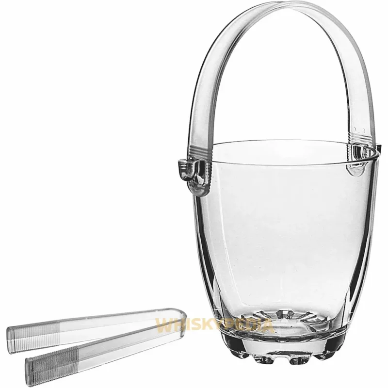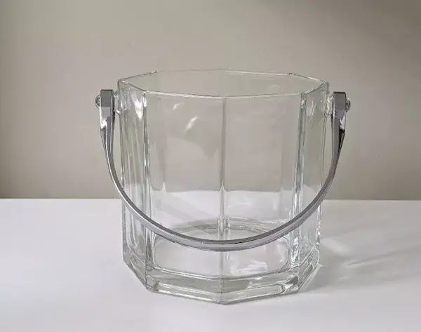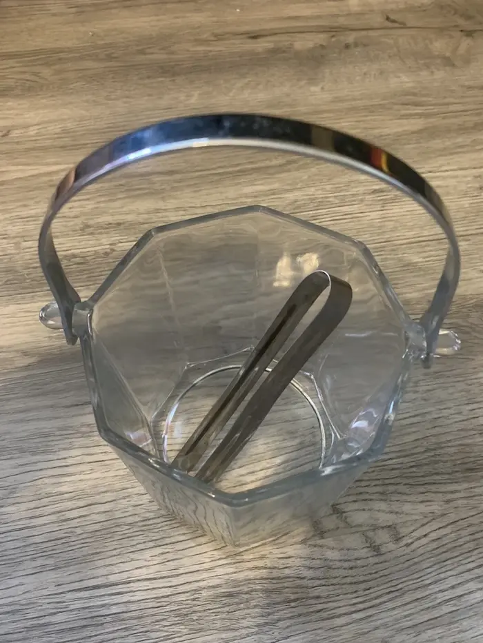 CUBO DE HIELO DE VIDRIO DE COLECCIÓN CON MANGO PLATEADO INOXIDABLE